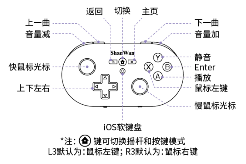 3、手柄手柄在键鼠模式下,短按房子键,可以切换左摇杆光标和映射模式。
